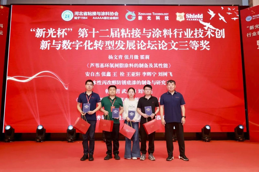 在晚宴現(xiàn)場,隆重舉行了多項(xiàng)榮譽(yù)頒獎儀式?;顒訛檎撐墨@獎人員、首批智庫專家代表等頒發(fā)榮譽(yù)證書。我公司榮獲行業(yè)影響力品牌獎。同時(shí),在論文評獎環(huán)節(jié)中,攬獲三等獎1篇、優(yōu)秀獎3篇。此外,李贊明等三位技術(shù)骨干入選首批河北省粘接與涂料行業(yè)智庫專家,充分彰顯了公司在技術(shù)研發(fā)與行業(yè)智庫建設(shè)方面的雙重實(shí)力。