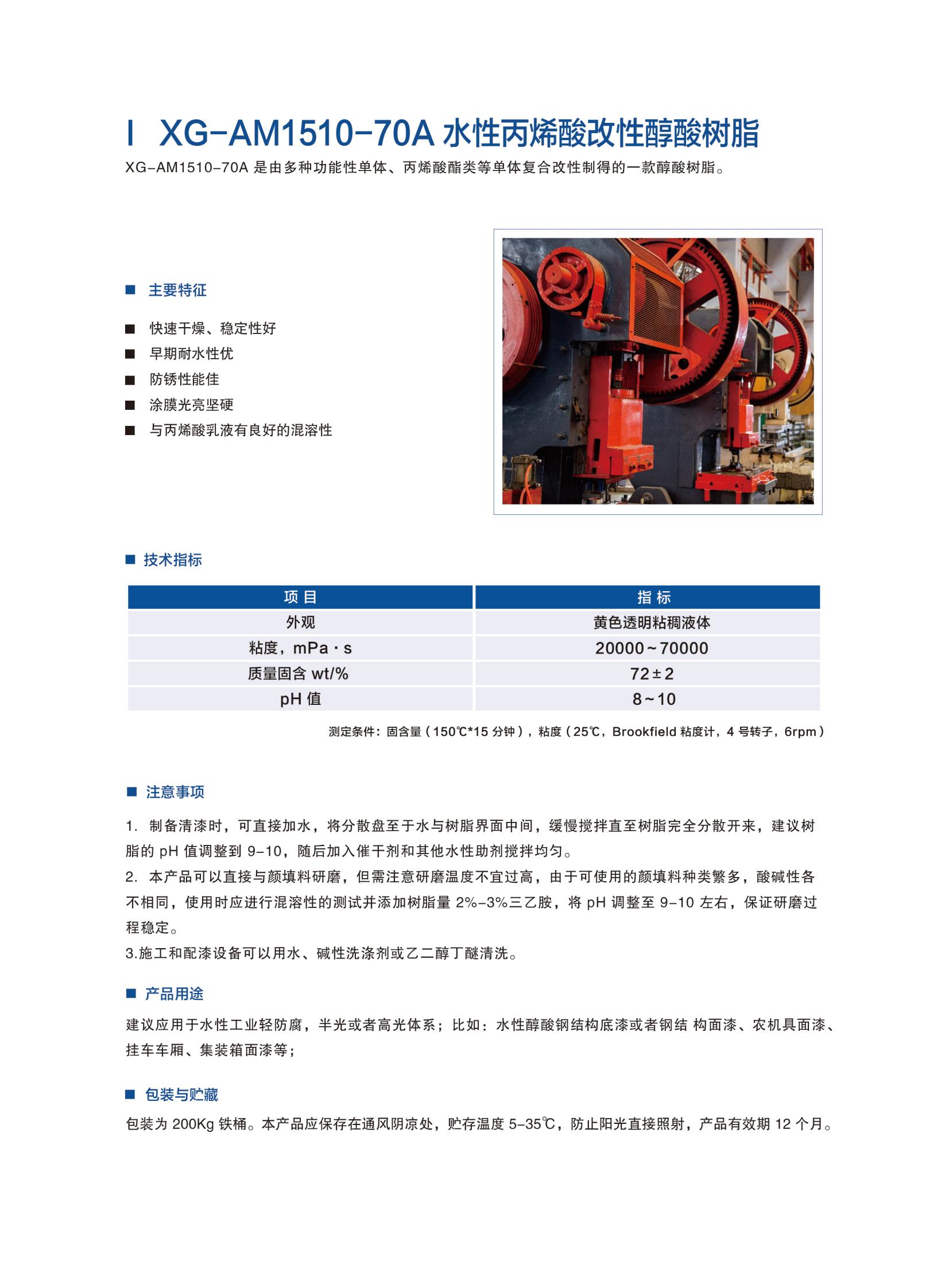 XG-AM1510-70A 水性丙烯酸改性醇酸樹(shù)脂